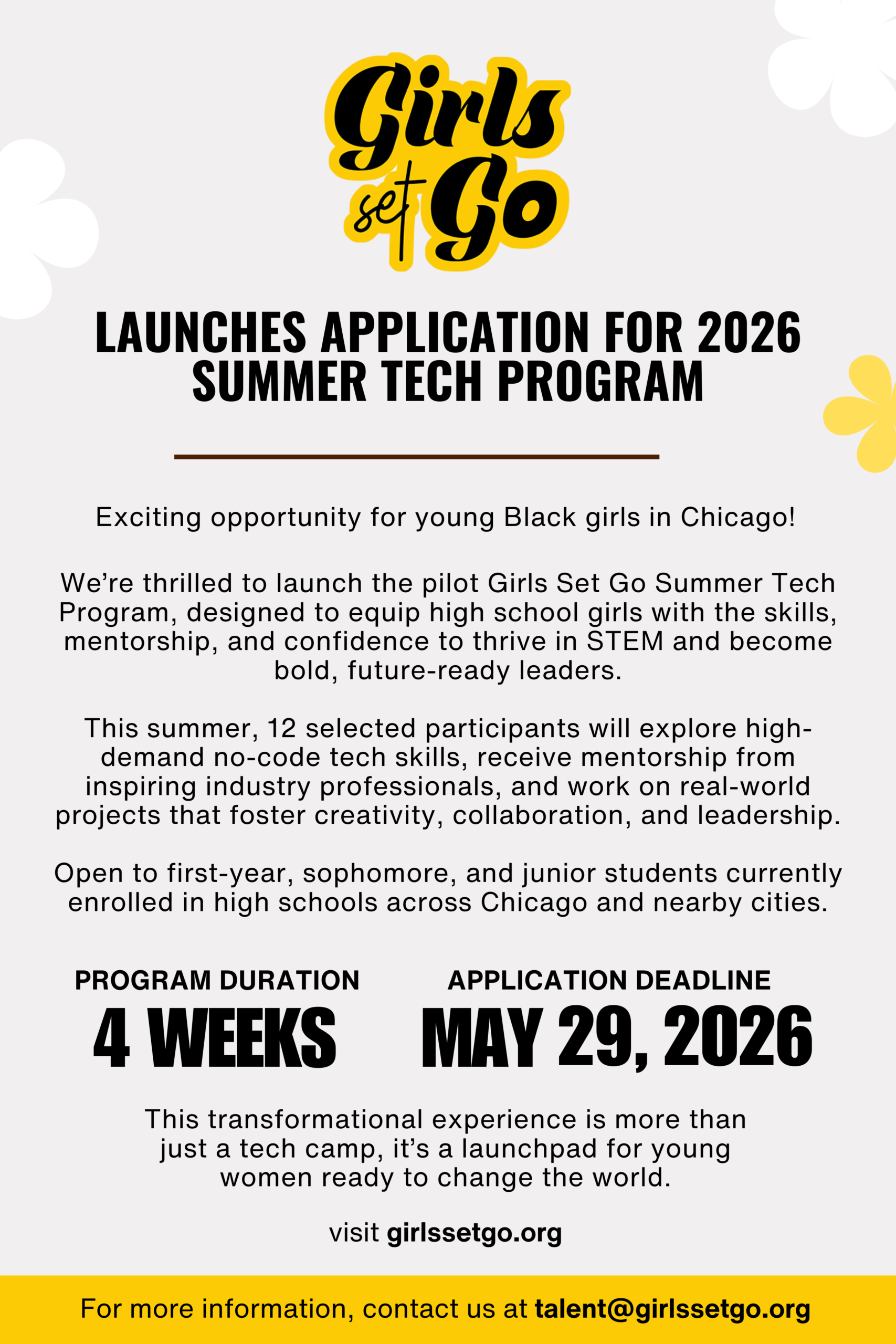 Announcing the 2026 Girls Set Go Summer Tech Program for all high school girls in Chicago!